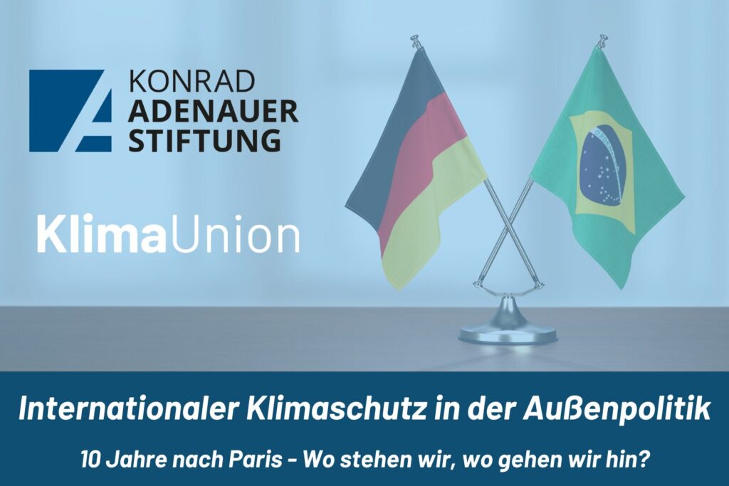 Unsere gemeinsame Veranstaltung mit der Konrad-Adenauer-Stiftung „Internationaler Klimaschutz in der Außenpolitik: 10 Jahre nach Paris – Wo stehen wir, wo gehen wir hin?“ bringt Stimmen aus Politik, Wissenschaft und Zivilgesellschaft zusammen. Gemeinsam möchten wir diskutieren, wie internationale Klimapolitik weiterentwickelt werden kann und welche Handlungsoptionen sich für Deutschland und seine Partner eröffnen.